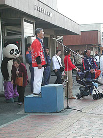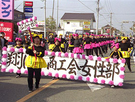 今年は、グランプリ賞金15万円、賞金商品あわせて80万円と大幅アップも手伝い、各パレード隊のパフォーマンスも気合い充分で望んでいました。 スタート地点の役場前では各隊の気合いで、熱気があふれかえっていました。